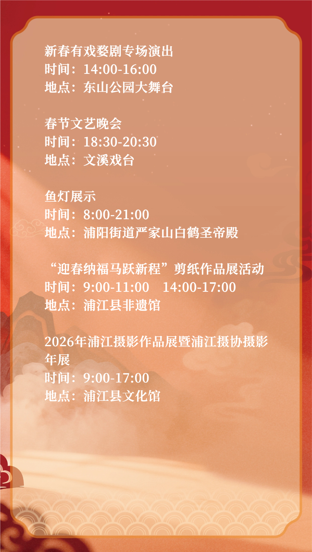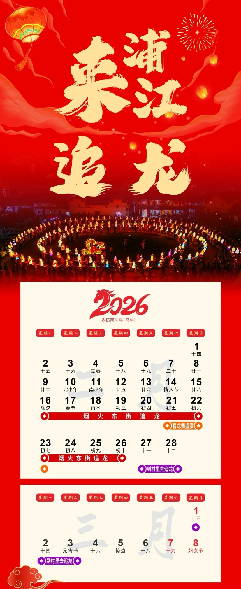 龍舞浦江,燈火映萬(wàn)家!今年春節(jié),浦江為您呈現(xiàn)一場(chǎng)鮮活的年俗盛宴——東街古巷中,人氣龍燈夜游流光璀璨;全縣板凳龍首次“大比舞”,鑼鼓聲震云霄;鄉(xiāng)村“追龍”打卡,煙火氣十足。牛清湯的暖、米篩爬的韌,更讓年味醇厚。即日起,我們將每日推送當(dāng)日活動(dòng),收好這份日歷,日日有精彩、處處可游玩,跟著指引,在浦江過(guò)個(gè)地道熱鬧的中國(guó)年!