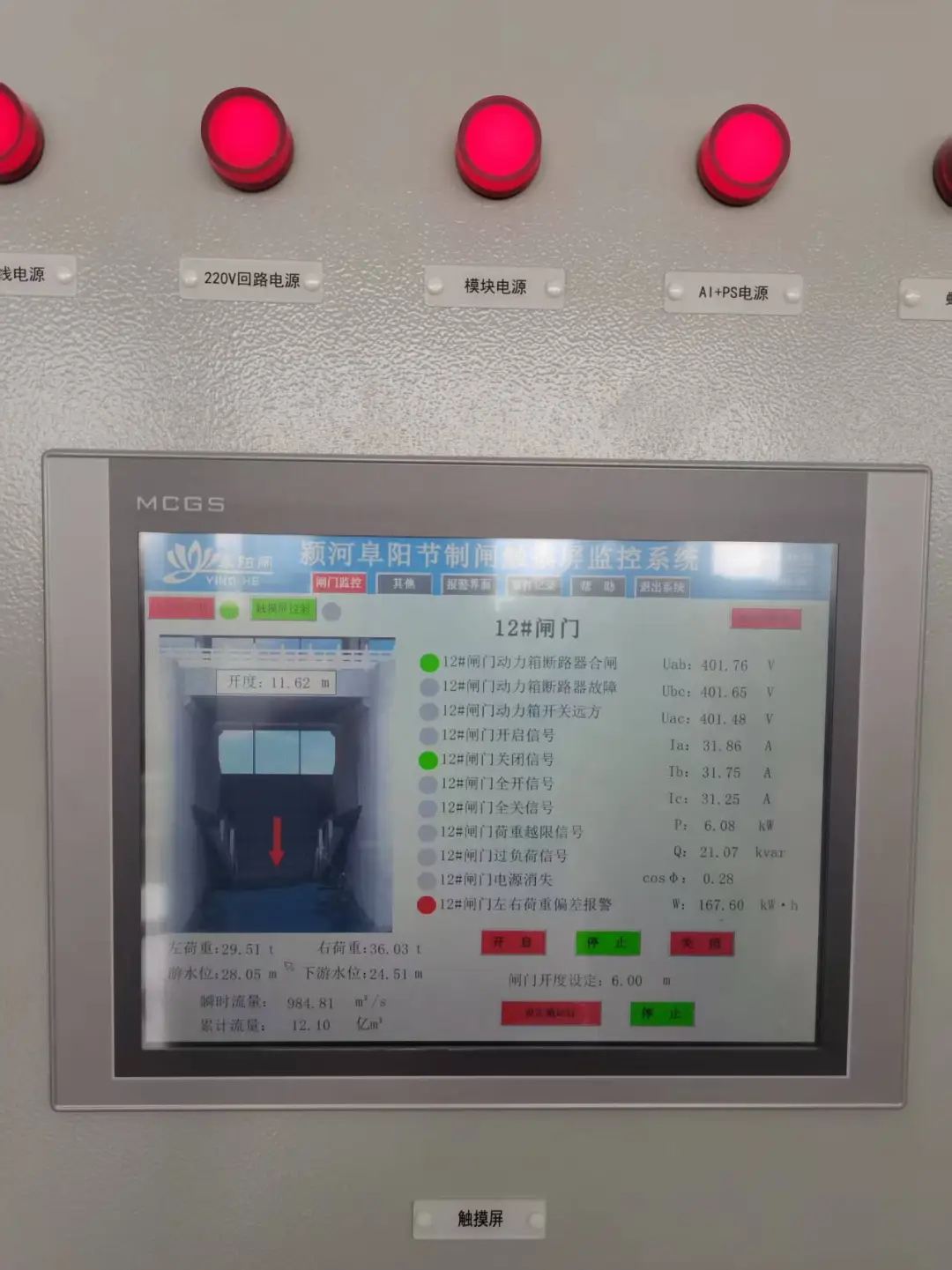 李懷林介紹,此次聯(lián)調聯(lián)試對現(xiàn)地手動、觸摸屏操控、中控室遠程這三級操控模式,以及雙路市政供電和400千伏備用發(fā)電機構成的三重電力保障進行測試,確保全程安全穩(wěn)定。聯(lián)調聯(lián)試從12#孔開始,逐孔開展啟閉測試,重點校驗閘門開度、荷重、上下游限位、上下游水位監(jiān)測及自動化控制系統(tǒng)的運行狀態(tài)等。按照計劃,單孔空載、負載測試將分步實施,備用發(fā)電機的空載與負載運行時間均不低于半小時,全部調試工作預計3天內完成。