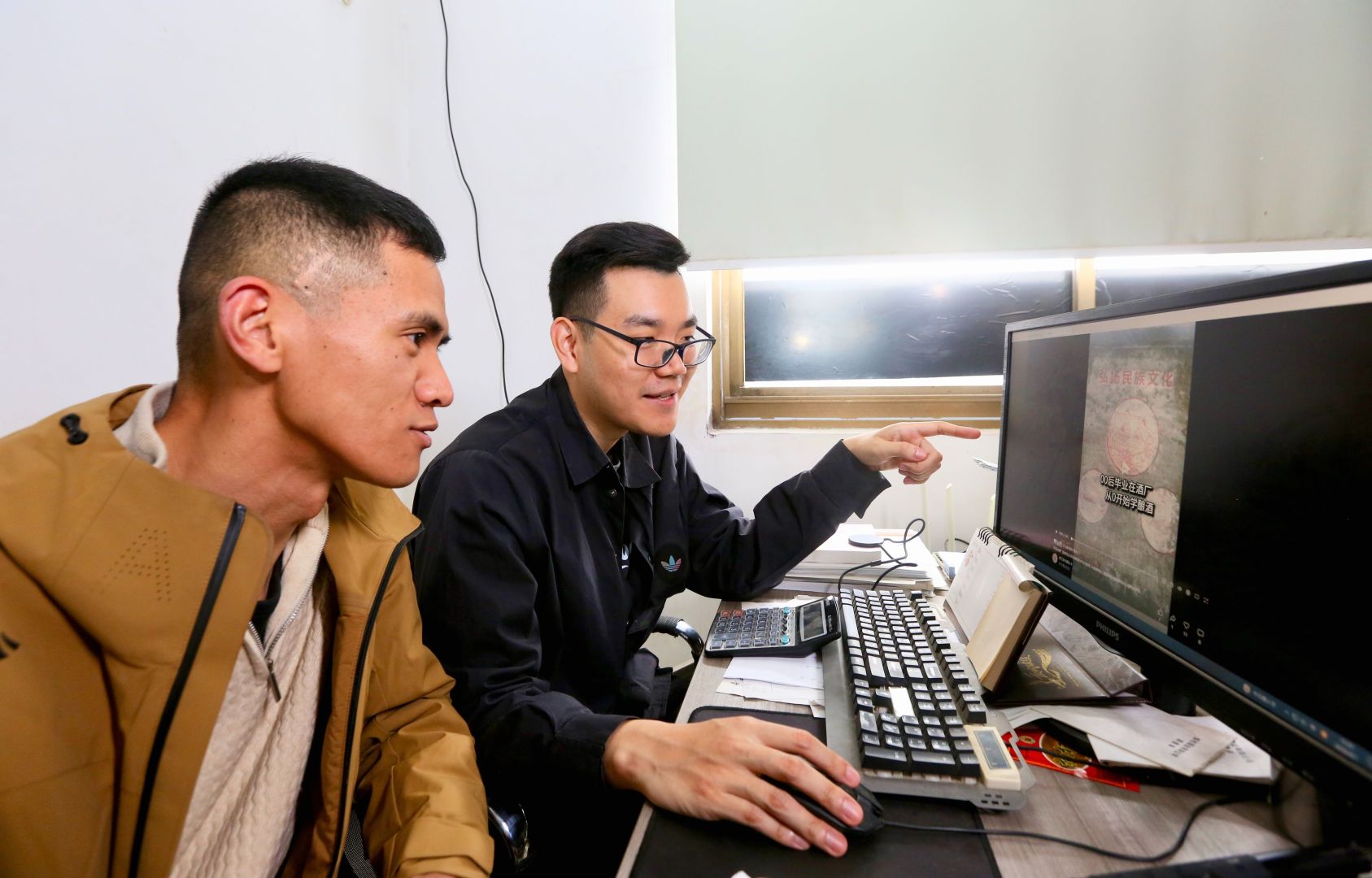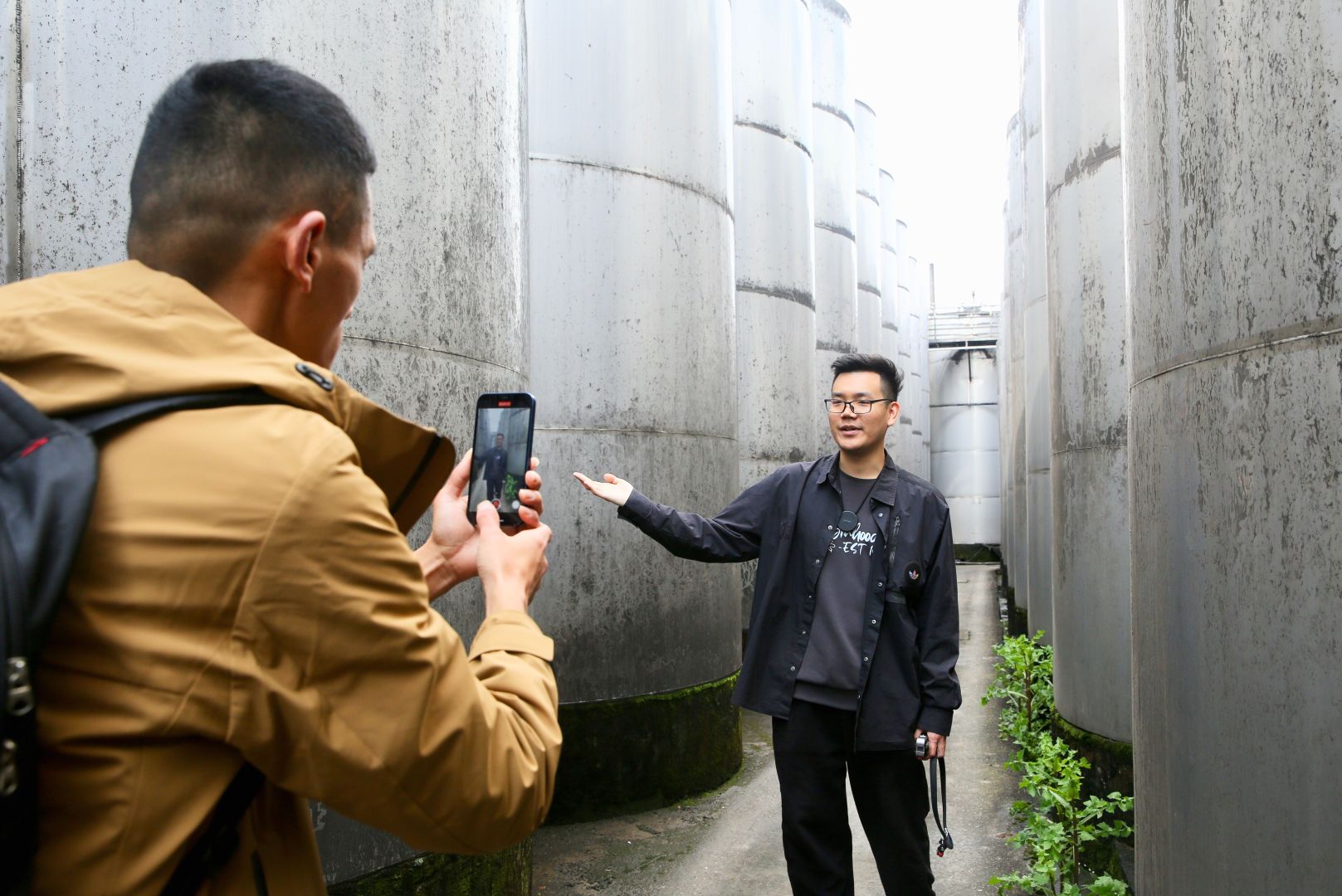 ▲曹立豐在酒廠里拍攝自媒體宣傳素材,通過年輕人喜歡的形式弘揚老字號。