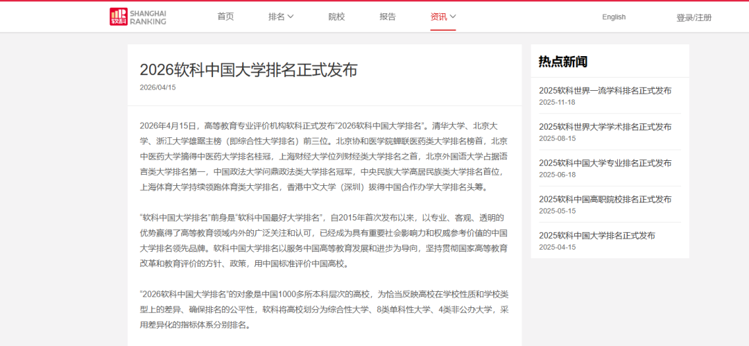 據(jù)了解,“2026軟科中國大學(xué)排名”的評(píng)價(jià)對(duì)象是國內(nèi)1000多所本科層次的高校。為了準(zhǔn)確體現(xiàn)不同高校在學(xué)校性質(zhì)和類型上的差異,保證排名的公平性,軟科將高校劃分為綜合性大學(xué)、8類單科性大學(xué)以及4類非公辦大學(xué),并針對(duì)不同類別采用差異化的指標(biāo)體系分別進(jìn)行排名。