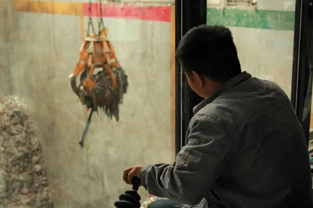 在垃圾吊控制室,作業(yè)人員精準(zhǔn)操控吊機(jī),將垃圾投入進(jìn)料口,沿溜槽進(jìn)入爐排爐,瞬間被火焰吞噬?!袄请姀S的‘口糧’,塑料、皮革、衣物等都能被充分利用?!崩畲喝A形象地說。
