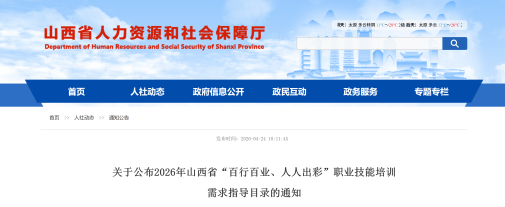 近日,山西省人力資源和社會(huì)保障廳正式發(fā)布《2026年山西省“百行百業(yè)、人人出彩”職業(yè)技能培訓(xùn)需求指導(dǎo)目錄》。該目錄緊密圍繞全省產(chǎn)業(yè)布局與就業(yè)市場實(shí)際需求,共涵蓋351個(gè)職業(yè)(工種)以及325家培訓(xùn)機(jī)構(gòu)。