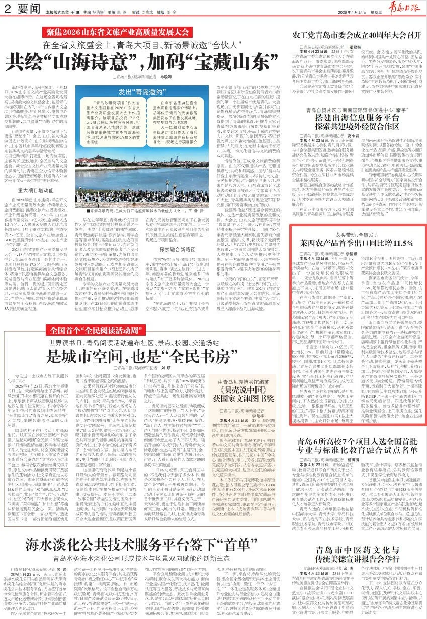 原標(biāo)題:《【媒體看萊西·青島日?qǐng)?bào)】萊西農(nóng)產(chǎn)品首季出口同比增11.5%》