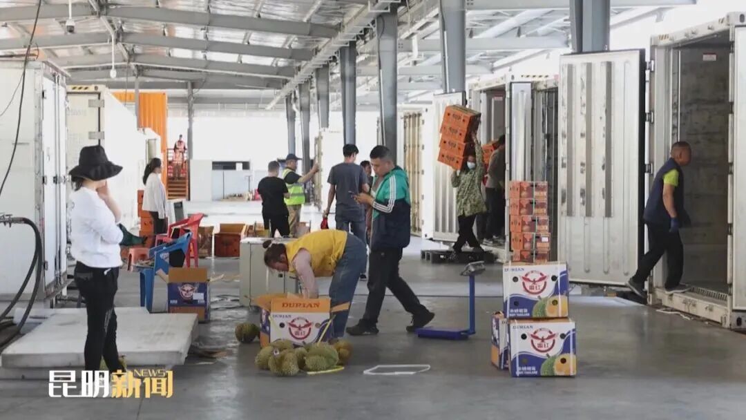 清晨7點(diǎn),一列滿載泰國榴蓮的中老鐵路“瀾湄快線”班列,歷經(jīng)26小時的行駛后,準(zhǔn)時抵達(dá)昆明。這批榴蓮一部分供應(yīng)云南本地市場,其余大部分通過鐵路與公路的無縫對接,在48小時內(nèi)快速送達(dá)成都、廣州、上海、鄭州、沈陽等全國30多個城市,讓消費(fèi)者第一時間嘗到新鮮的榴蓮。