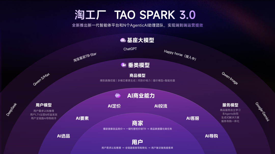 “淘工廠星火”3.0的解決方案不是給商家新增一個(gè)AI工具,而是將選品、素材制作、定價(jià)、投流、客服等運(yùn)營環(huán)節(jié)整合為一條可托管、可復(fù)用、可迭代的經(jīng)營鏈條。