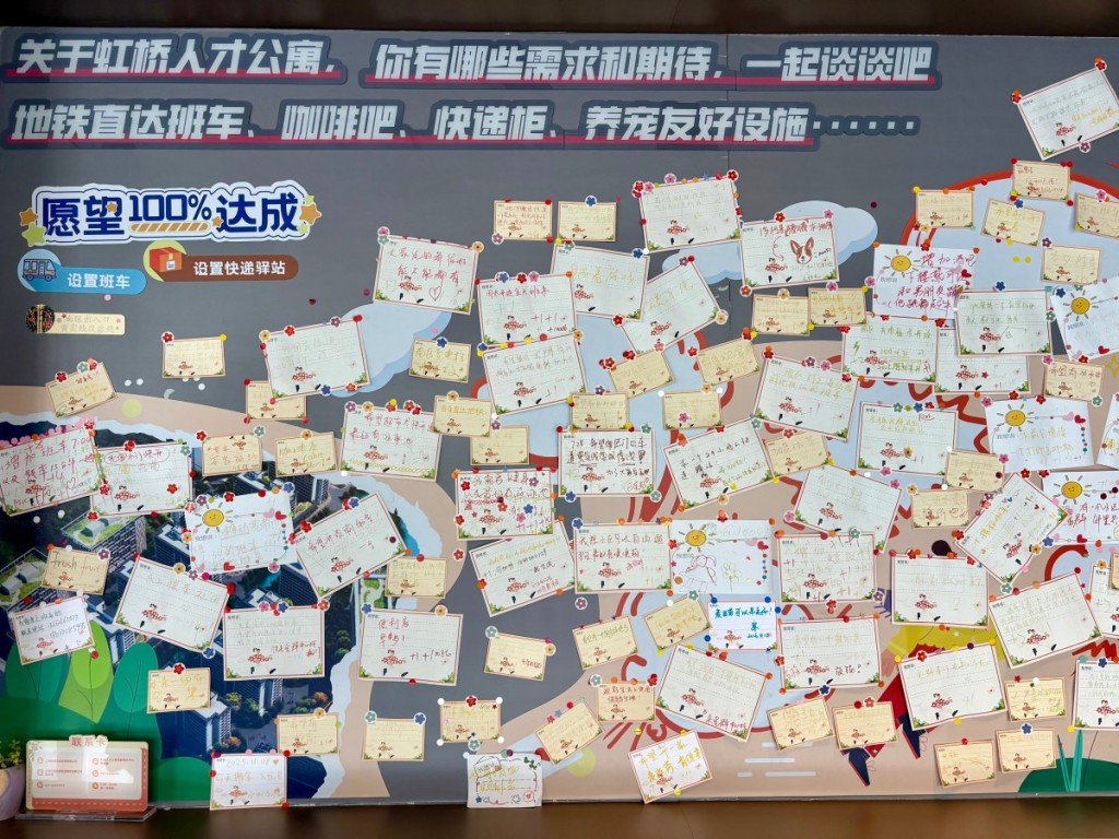 虹橋人才公寓心愿墻。澎湃新聞記者 陳悅 圖