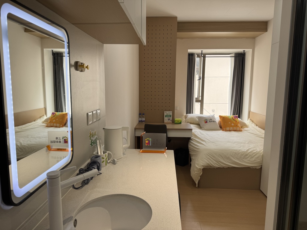 今年4月,和光寓響應(yīng)上海青年驛站提質(zhì)擴容計劃,專門辟出3個房間。沈靈獒表示,學(xué)生的申請基本無縫銜接,上午有人退房,下午就有人入住。