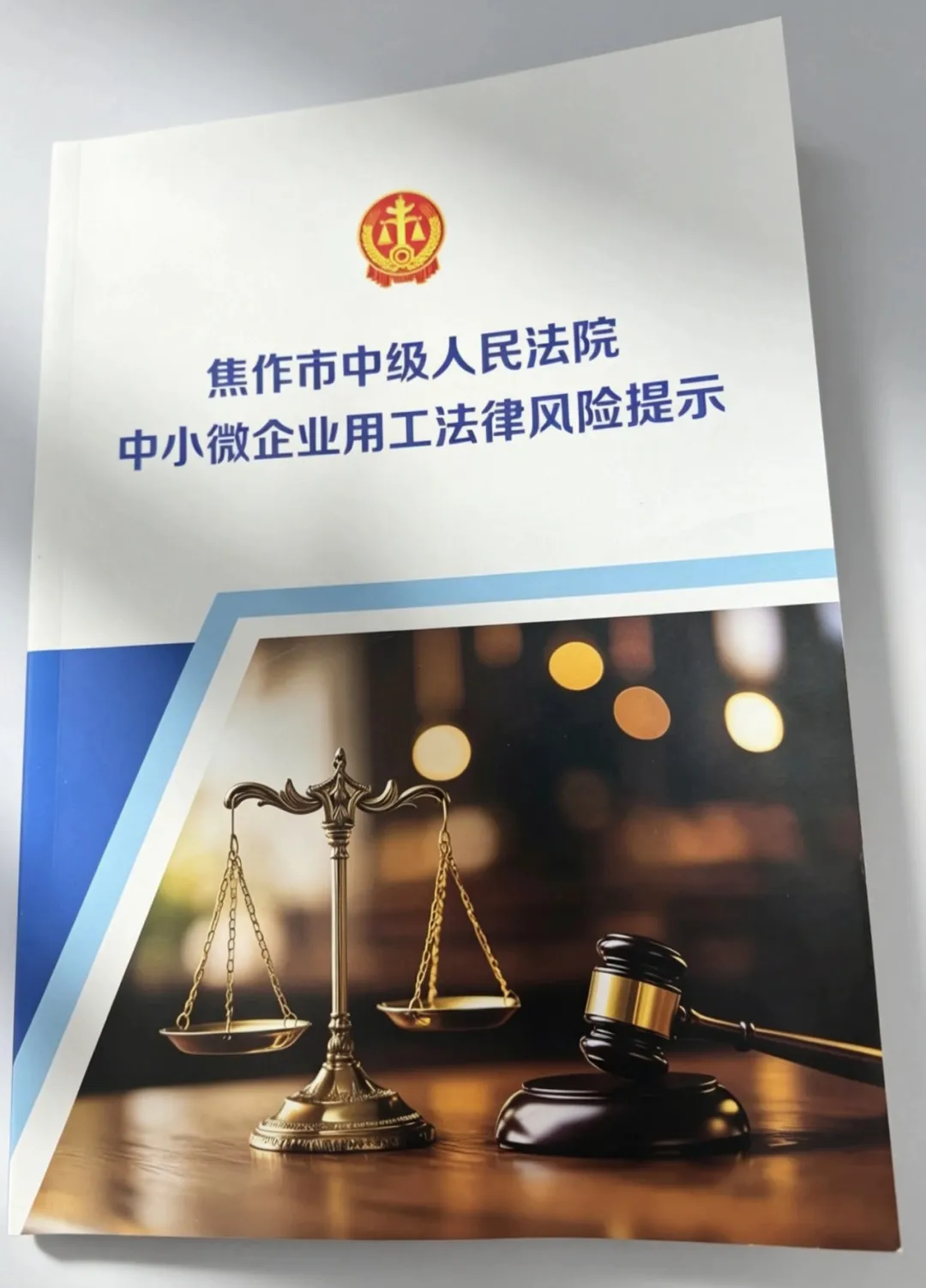 在依法保障勞動者合法權(quán)益的同時,焦作中院勞動者權(quán)益保護庭主動延伸司法職能,前置服務(wù)關(guān)口,對過往審理的各類勞動爭議案件進行全面梳理復(fù)盤,總結(jié)出企業(yè)在招聘入職、勞動合同簽訂、合同履行以及解除等全流程中,容易出現(xiàn)的用工不規(guī)范問題,以及高發(fā)糾紛對應(yīng)的法律風險點,在此基礎(chǔ)上編制完成《企業(yè)用工風險防范提示手冊》。手冊通過法條解讀、典型案例分析的形式,為企業(yè)給出明確的用工建議與風險提示,目前已經(jīng)累計向企業(yè)發(fā)放2000余冊,既指導(dǎo)企業(yè)實現(xiàn)合法規(guī)范用工,幫助企業(yè)提前規(guī)避用工風險,也從源頭上減少了勞動爭議的產(chǎn)生,推動勞資關(guān)系向更和諧穩(wěn)定的方向發(fā)展。