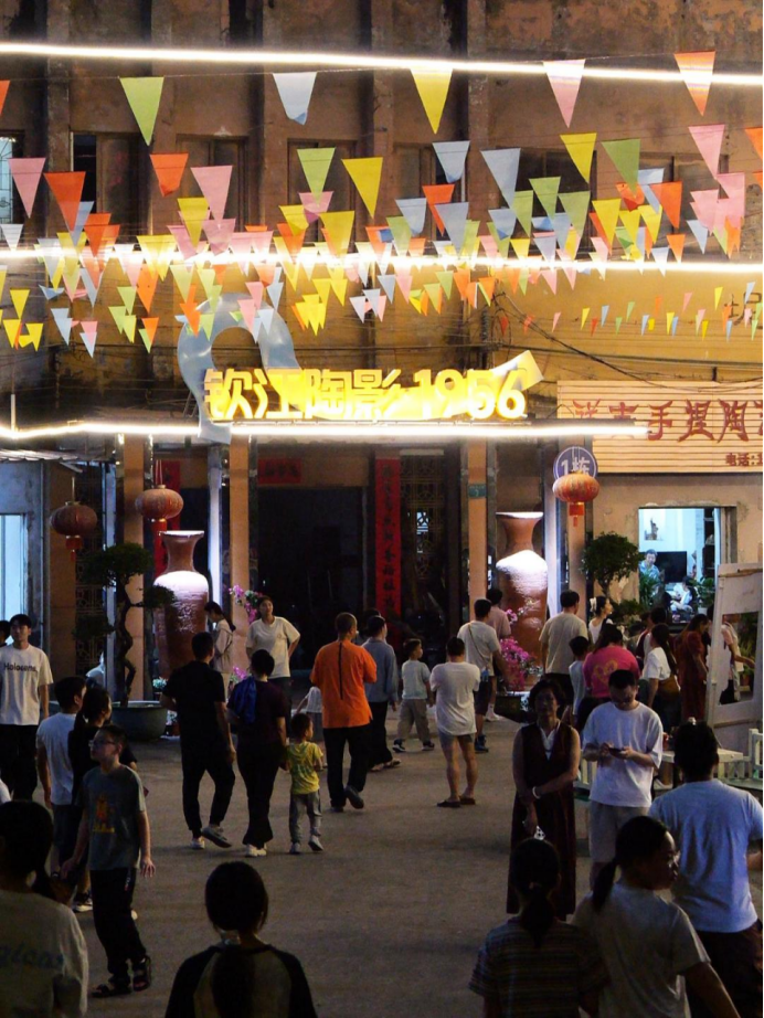 今年正好是這座老廠建成投產(chǎn)的70周年。這座見證了整個欽州坭興陶產(chǎn)業(yè)發(fā)展的工業(yè)遺產(chǎn),經(jīng)過精心改造升級,原本被歲月塵封的老舊工業(yè)地帶,如今搖身一變,成為了點亮城市生活的文化秀場。走進改造后的老廠區(qū),環(huán)境煥然一新,四處都彌漫著濃郁的坭興陶文化氣息。這里被打造成了工業(yè)風與市井煙火氣深度融合的文化消費空間,用年輕人喜愛的方式,讓坭興陶這個傳承千年的古老非遺重新煥發(fā)了活力,也為欽州這座城市注入了全新的生機與魅力。