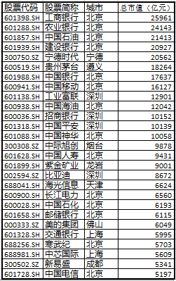 全國(guó)千億市值A(chǔ)股公司的城市分布盤點(diǎn)