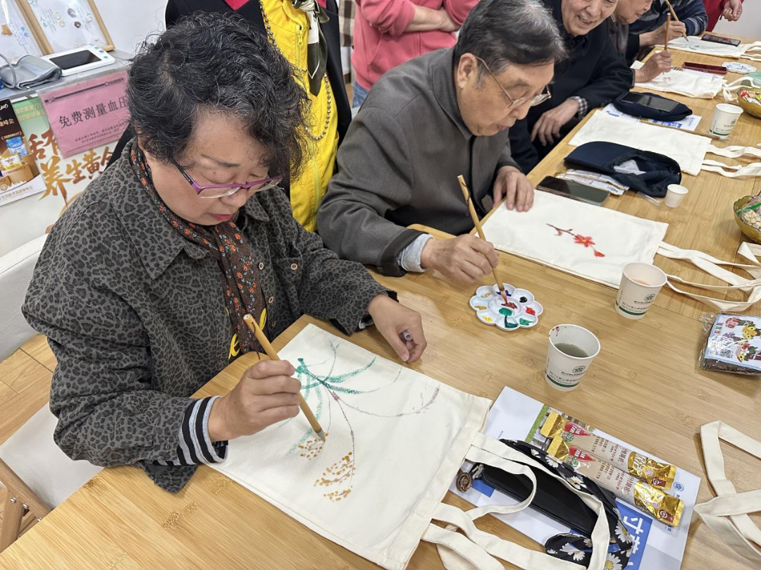 在活動的手作區(qū)域,帆布袋手繪、手工花制作等趣味體驗項目吸引了不少老人參與,大家圍坐在一起,你一言我一語商量創(chuàng)意,動手實踐制作專屬作品,在親手操作中感受到了勞動的趣味,也收獲了專屬于自己的五一節(jié)日紀(jì)念。另一邊,社區(qū)同步開展了義剪、免費血壓檢測、衣物縫補釘扣等便民服務(wù),工作人員和志愿者們服務(wù)耐心細(xì)致、態(tài)度熱情周到,實實在在解決了老年人出門不便、生活瑣事難處理的問題,把便民服務(wù)送到了小區(qū)家門口,把溫暖關(guān)懷送到了長輩們的心坎上。