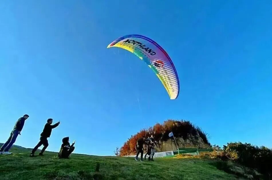 從寧馬線太白站打車大約15分鐘就能到達(dá)。起飛點(diǎn)設(shè)置在當(dāng)涂大青山李白文化旅游區(qū),海拔約370米,有專業(yè)教練一對一帶飛,空中飛行時(shí)長大約5分鐘,飛行過程中可以俯瞰長江、青山和太白島的全景。