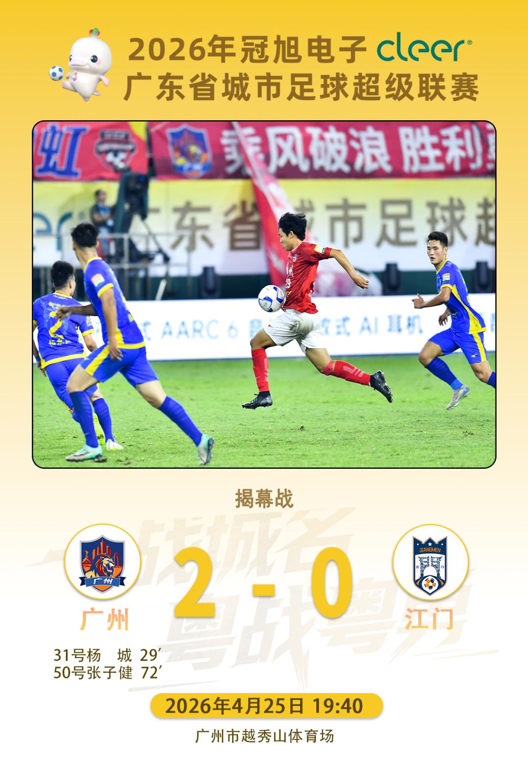 粵超揭幕戰(zhàn)放在了越秀山,東道主廣州隊(duì)2比0擊敗江門(mén)隊(duì),拿下了賽事首場(chǎng)勝利。球員楊城打進(jìn)了粵超歷史上的第一個(gè)進(jìn)球,或許他永遠(yuǎn)不會(huì)成為彭偉國(guó)那樣的足壇名宿,但這粒進(jìn)球,已經(jīng)給南粵草根足球,在這塊百年綠茵場(chǎng)上埋下了一顆滾燙的熱愛(ài)種子。